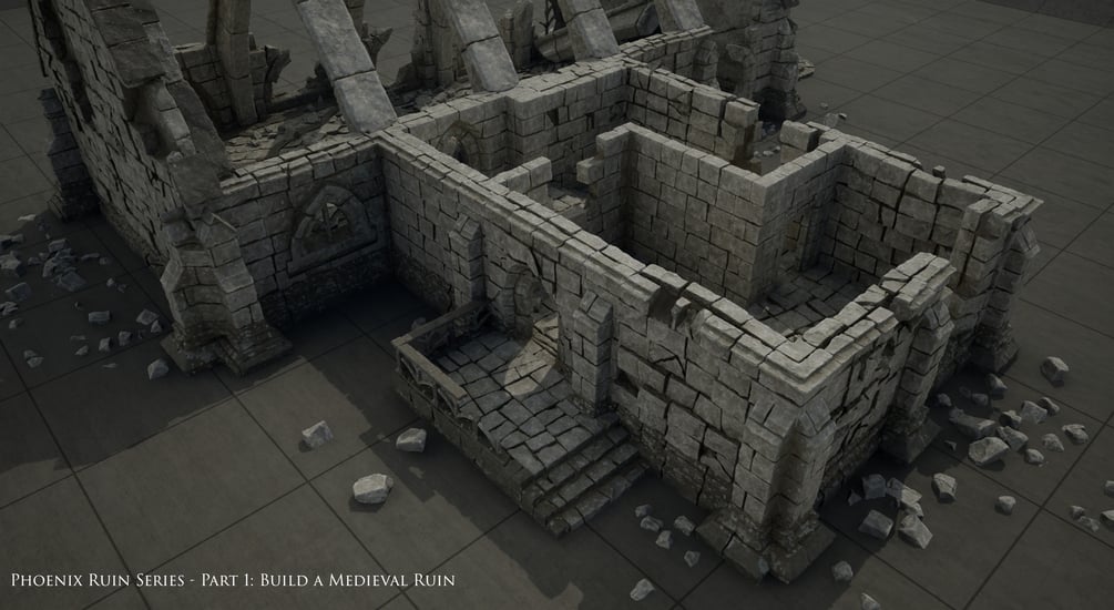 And finally in Chapter 8 we finish up and bring the whole project together by creating our handrail, rock, and ruin chunk prop assets.